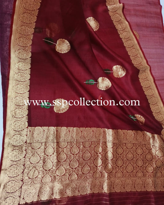 Maroon Pure Kora Silk Tilfi Banarasi Saree