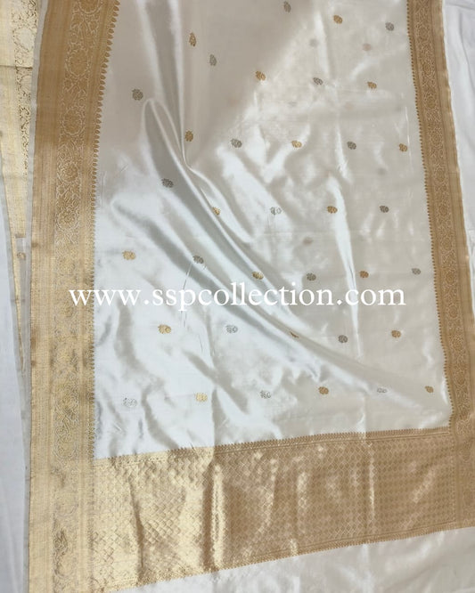 Greenish-Grey Pure Kora Silk Meenakaari Banarasi Suit