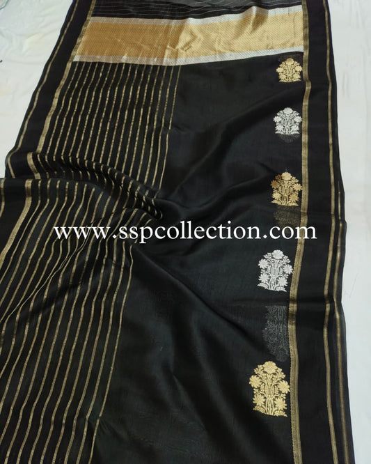 Sold outBlack Pure Kora Silk Banarasi Saree