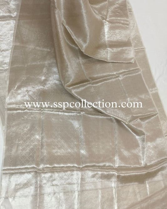 Silver Pure Molten Tissue Silk Brocade Banarasi Saree