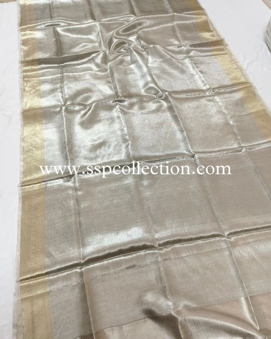 Silver-Gold Pure Molten Tissue Silk Brocade Banarasi Saree