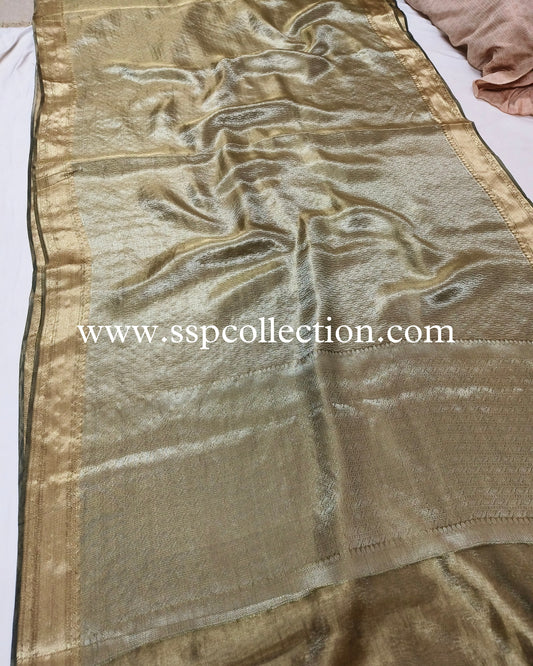 Mehndi-Green Pure Molten Tissue Silk Brocade Banarasi Saree