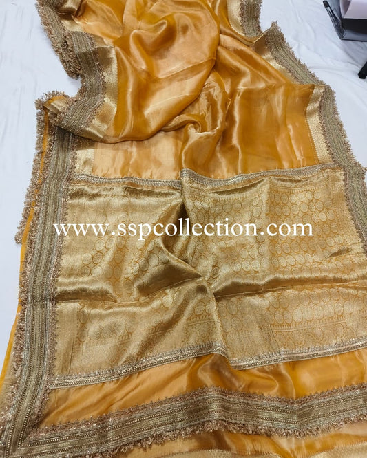 Yellow-Gold Banarasi Pure Tissue Silk Saree