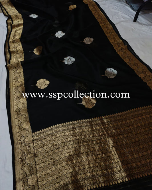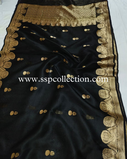 Sold outBlack Pure Kora Silk Banarasi Saree