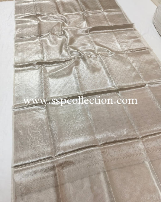 Silver Pure Molten Tissue Silk Brocade Banarasi Saree
