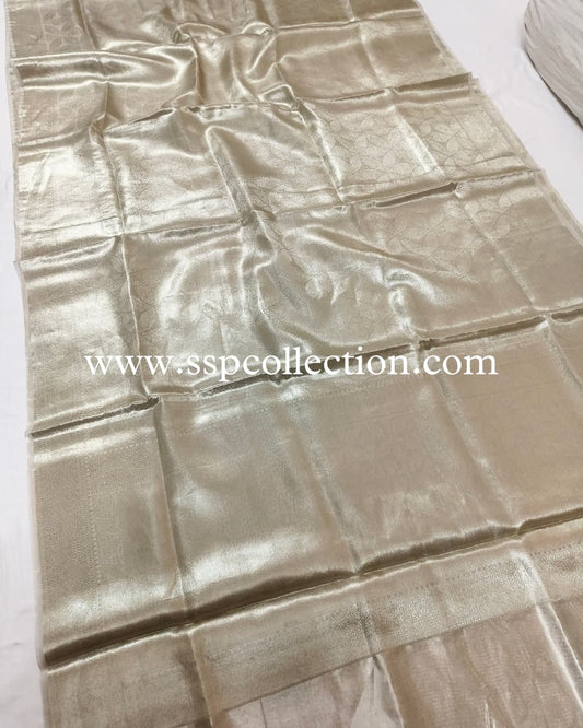 Silver-Gold Pure Molten Tissue Silk Brocade Banarasi Saree