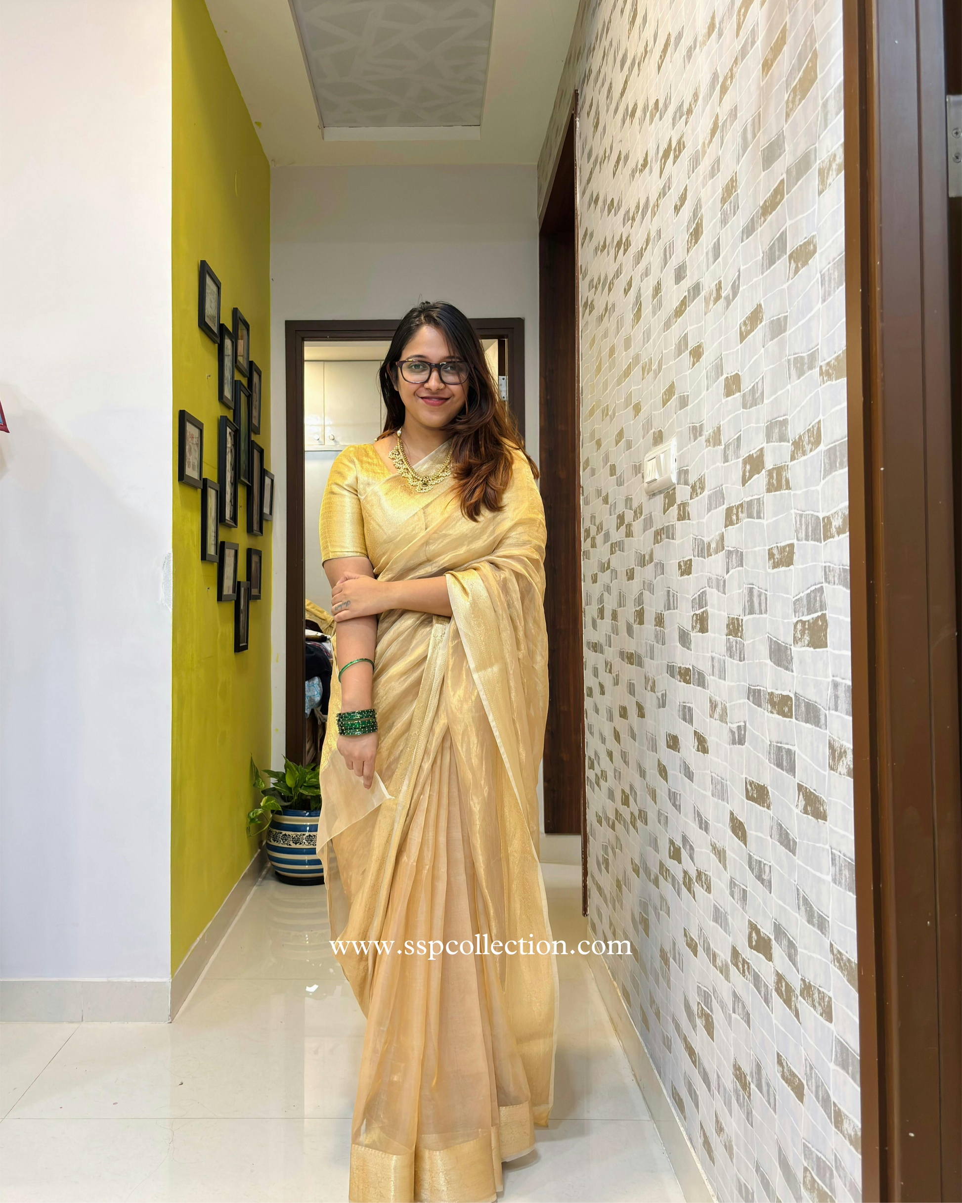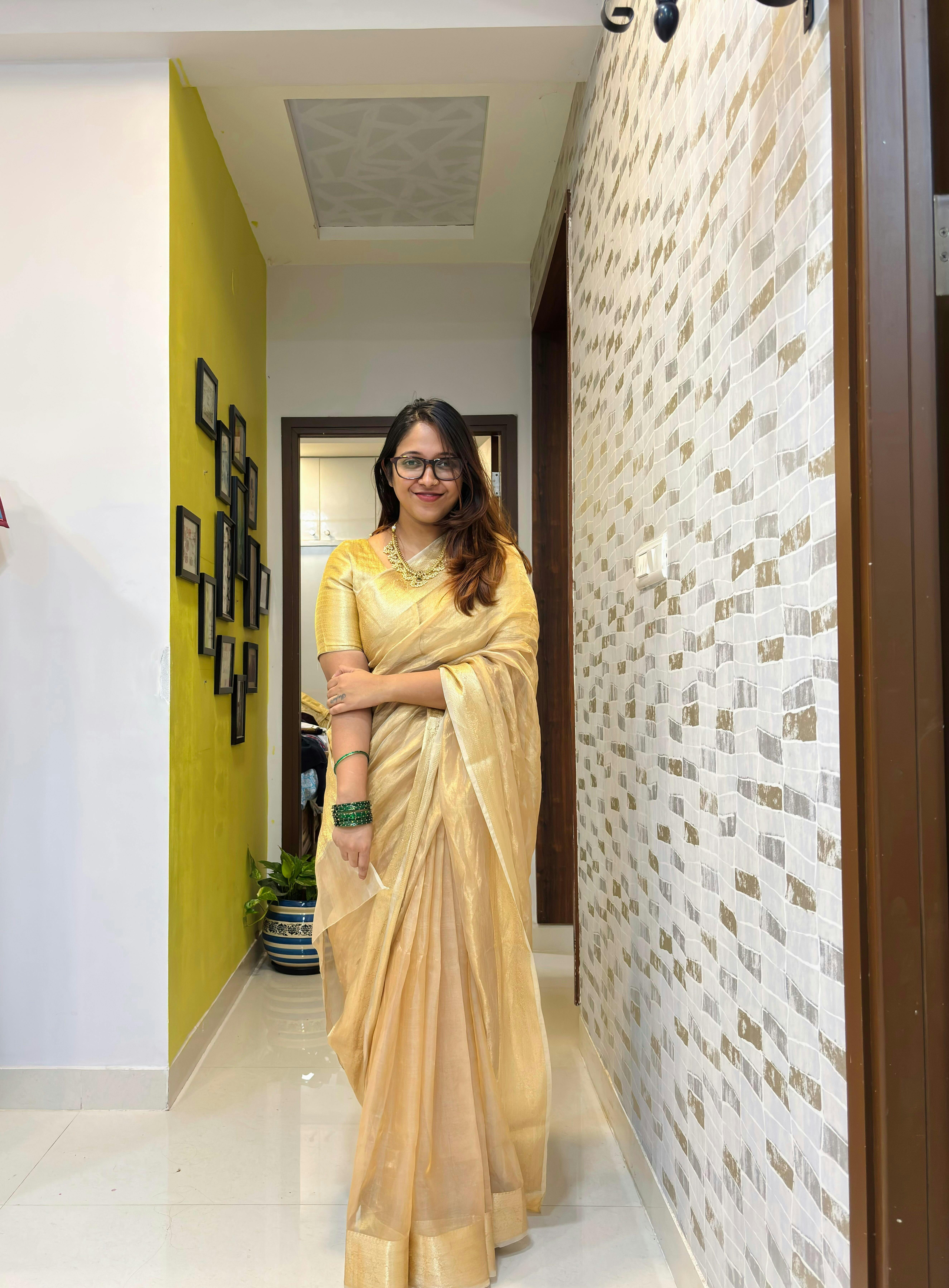 Champagne-Gold Pure Tissue Silk Banarasi Saree