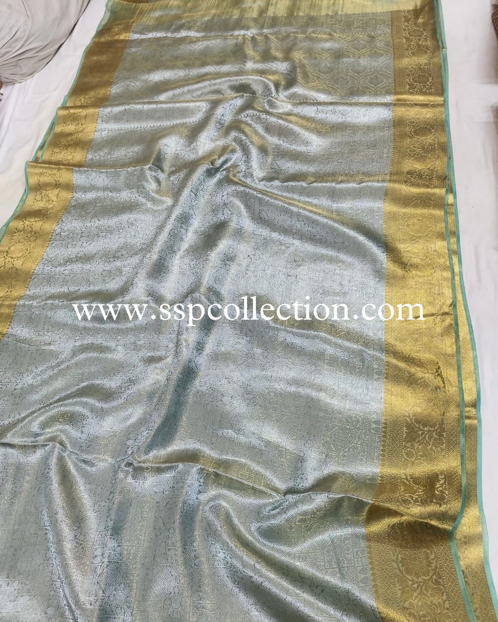 Turquoise Pure Molten Tissue Silk Brocade Banarasi Saree