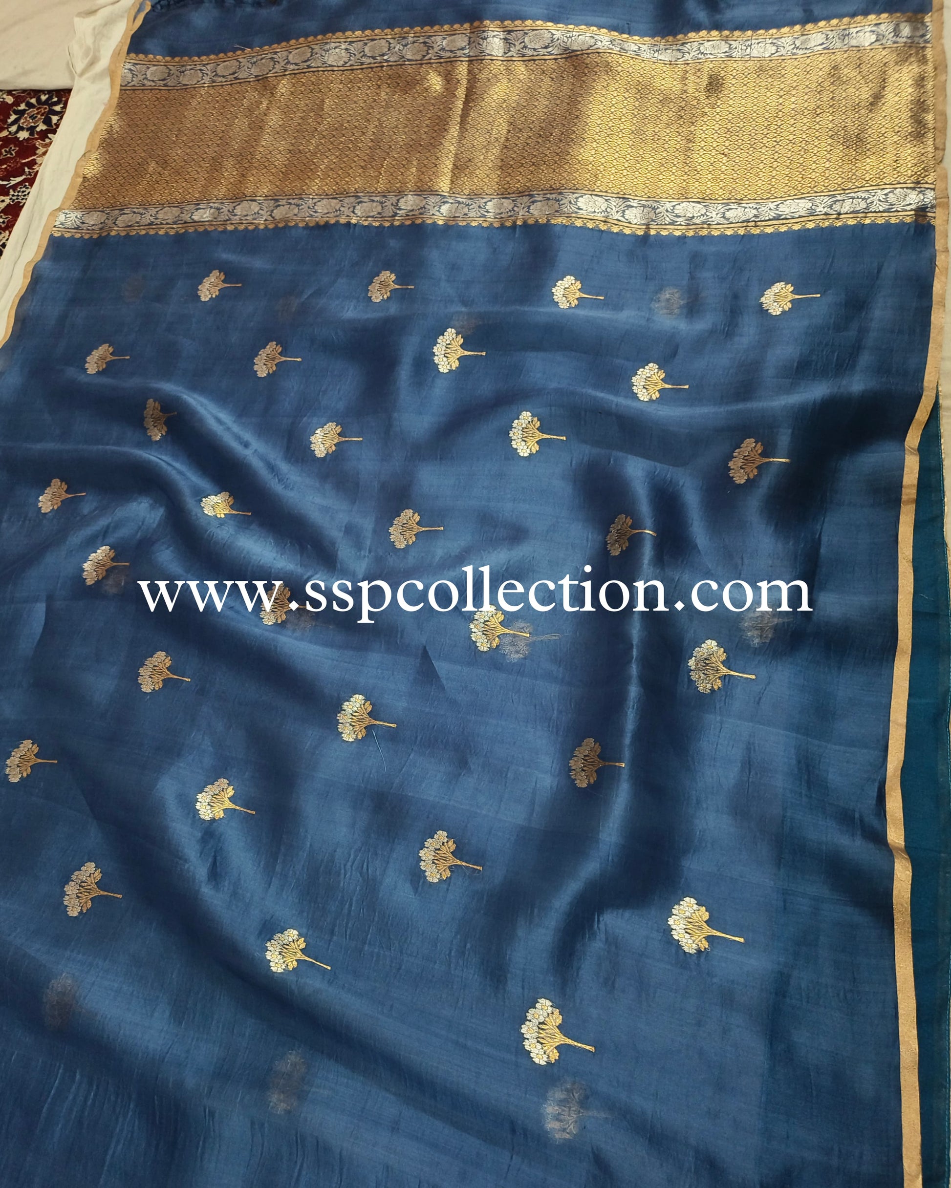 Yale-Blue Pure Kora Silk Banarasi Saree